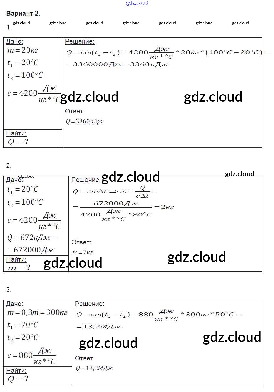 Ответ на задание вариант-2 Контрольные и самостоятельные работы Физика за 8 (восьмой) класс Громцева УМК 2017
