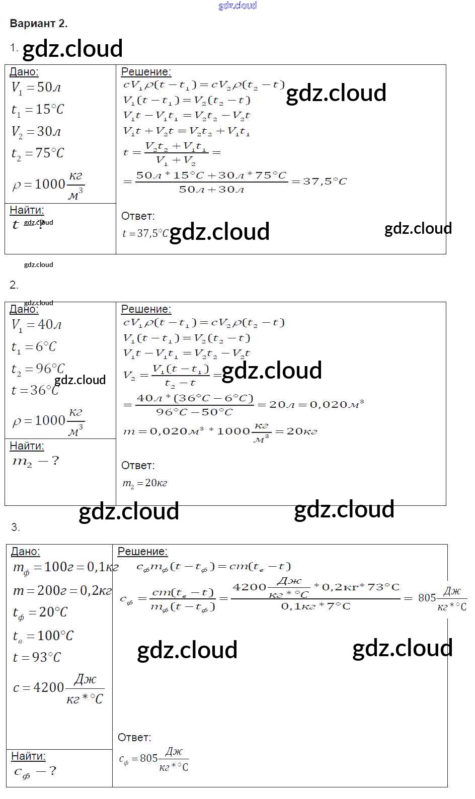 Ответ на задание вариант-2 Контрольные и самостоятельные работы Физика за 8 (восьмой) класс Громцева УМК 2017