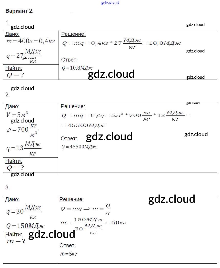 СР №8. Энергия топлива. Удельная теплота сгорания Ответы к самостоятельным работам по Физике 8 класс Контрольные и самостоятельные работы Громцева УМК Экзамен
