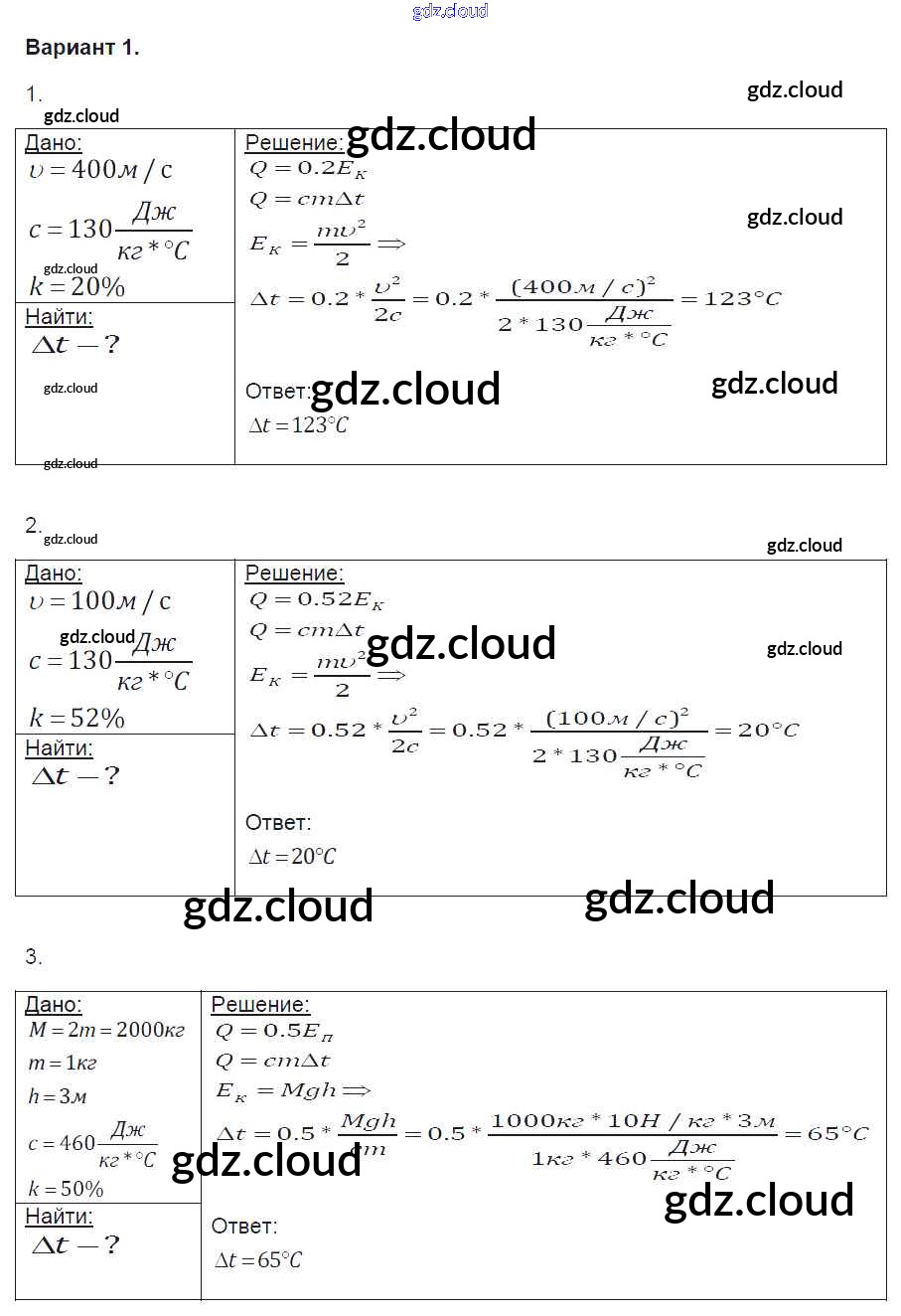 Ответ на задание вариант-1 Контрольные и самостоятельные работы Физика за 8 (восьмой) класс Громцева УМК 2017