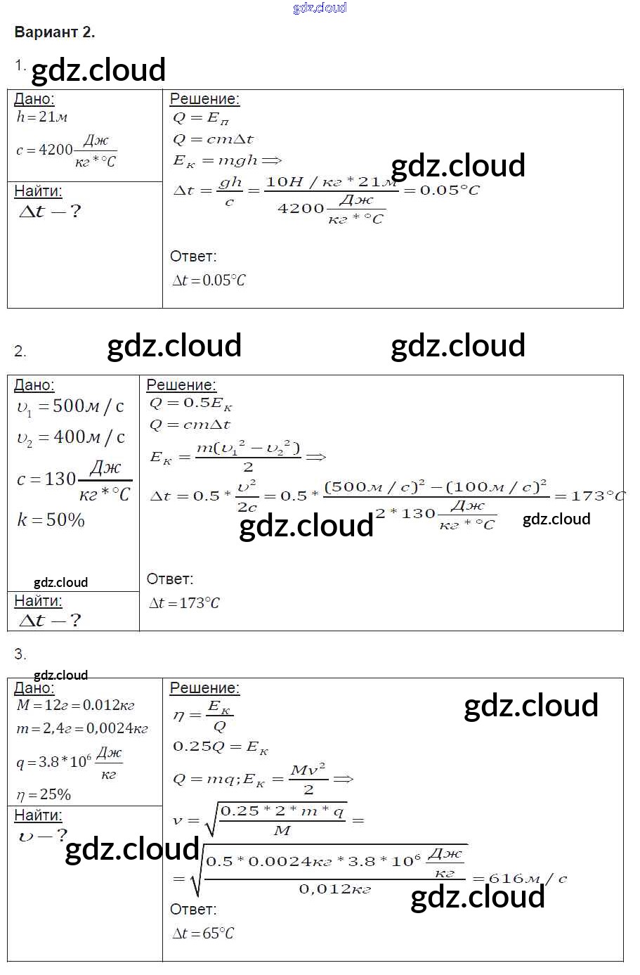 Ответ на задание вариант-2 Контрольные и самостоятельные работы Физика за 8 (восьмой) класс Громцева УМК 2017