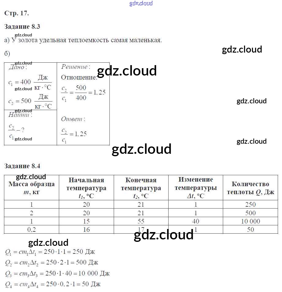 Ответ на задание 17 Рабочая тетрадь Физика за 8 (восьмой) класс Ханнанова Вертикаль 2017