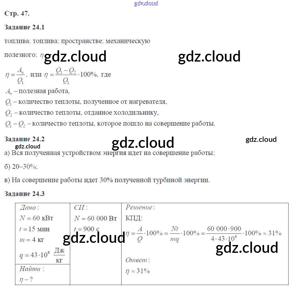 Ответ на задание 47 Рабочая тетрадь Физика за 8 (восьмой) класс Ханнанова Вертикаль 2017