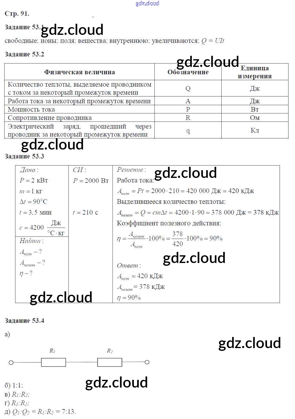 Ответ на задание 91 Рабочая тетрадь Физика за 8 (восьмой) класс Ханнанова Вертикаль 2017