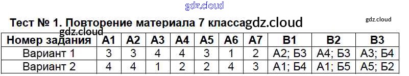 Ответ на задание Тест-1. Повторение материала 7 класса Контрольно-измерительные материалы (КИМ) Физика за 8 (восьмой) класс Бобошина 2014