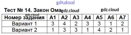 Ответ на задание Тест-14. Закон Ома Контрольно-измерительные материалы (КИМ) Физика за 8 (восьмой) класс Бобошина 2014 ФГОС онлайн и без номера телефона.