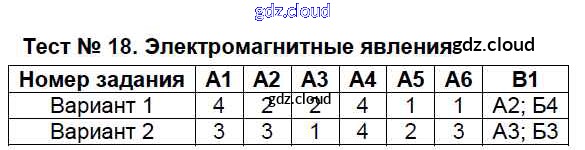 Ответ на задание Тест-18. Электромагнитные явления Контрольно-измерительные материалы (КИМ) Физика за 8 (восьмой) класс Бобошина 2014
