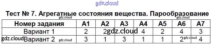 Ответ на задание Тест-7. Агрегатные состояния вещества. Парообразование Контрольно-измерительные материалы (КИМ) Физика за 8 (восьмой) класс Бобошина 2014