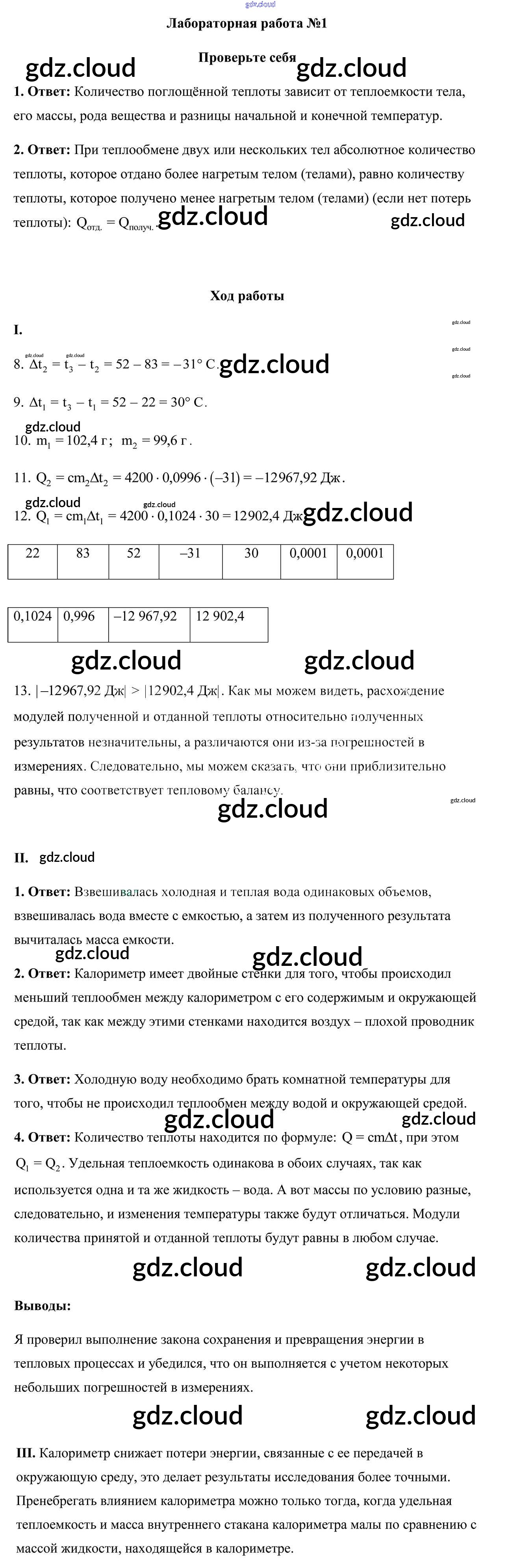 Ответы к лабораторным работам по Физике 8 класс Лабораторные работы Исаченкова Аверсэв