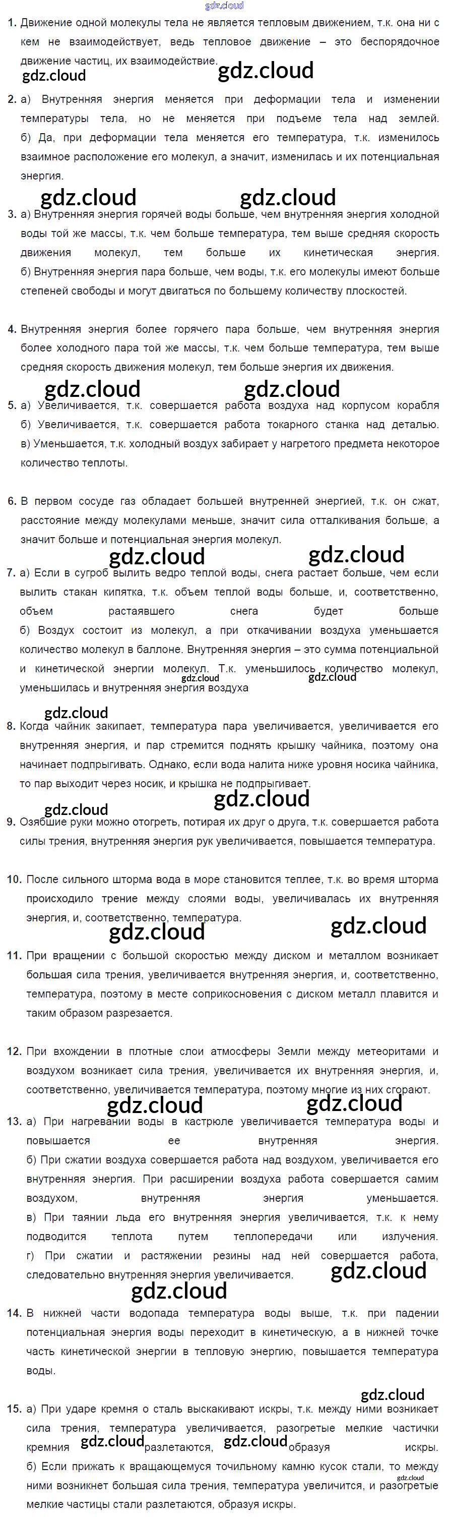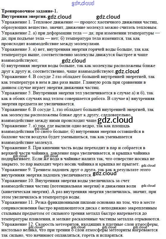 Ответ на задание 1. Внутренняя энергия Дидактические материалы Физика за 8 (восьмой) класс Марон Вертикаль 2016