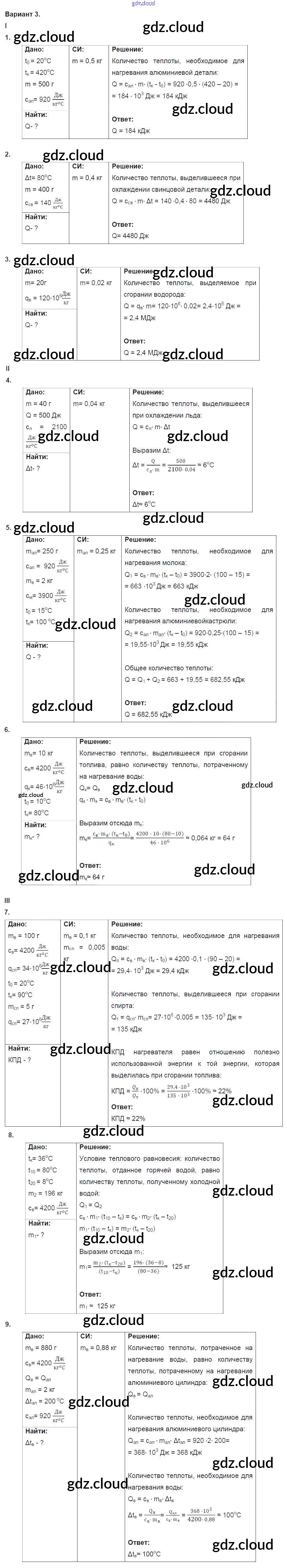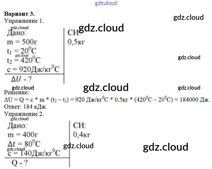 КР №1. Расчет количества теплоты. Варианты Ответы к контрольным работам по Физике 8 класс Дидактические материалы Марон Вертикаль Дрофа