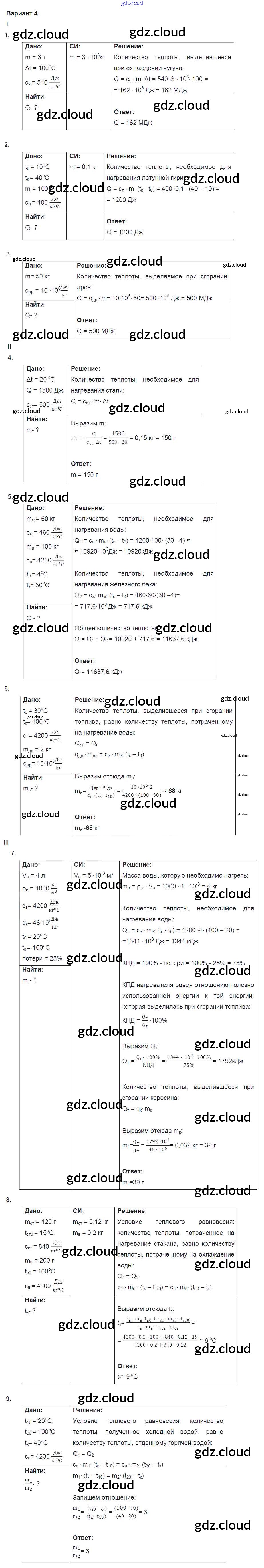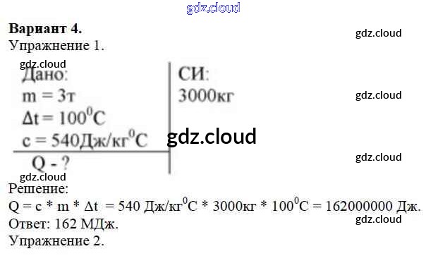 КР №1. Расчет количества теплоты. Варианты Ответы к контрольным работам по Физике 8 класс Дидактические материалы Марон Вертикаль Дрофа