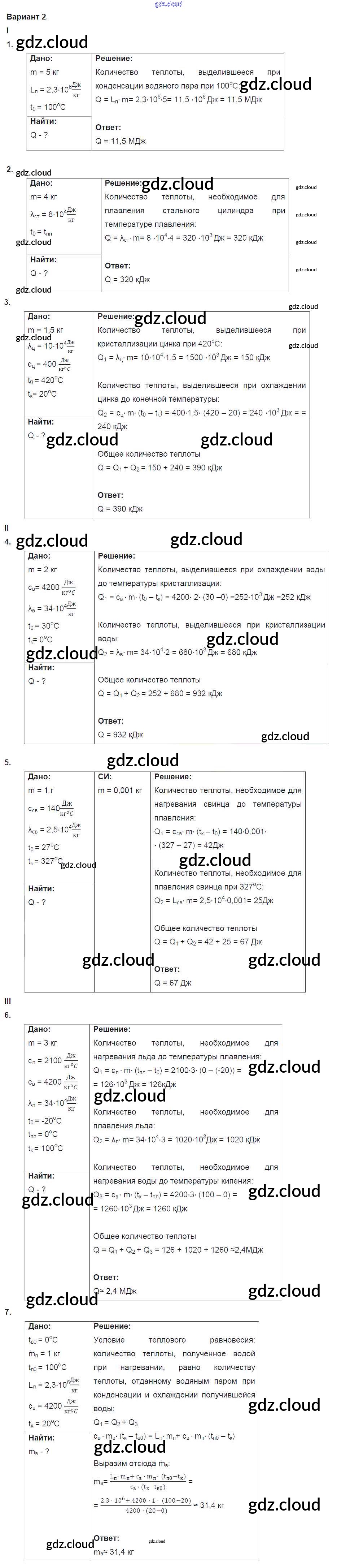 КР №2. Изменение агрегатных состояний вещества. Варианты Ответы к контрольным работам по Физике 8 класс Дидактические материалы Марон Вертикаль Дрофа