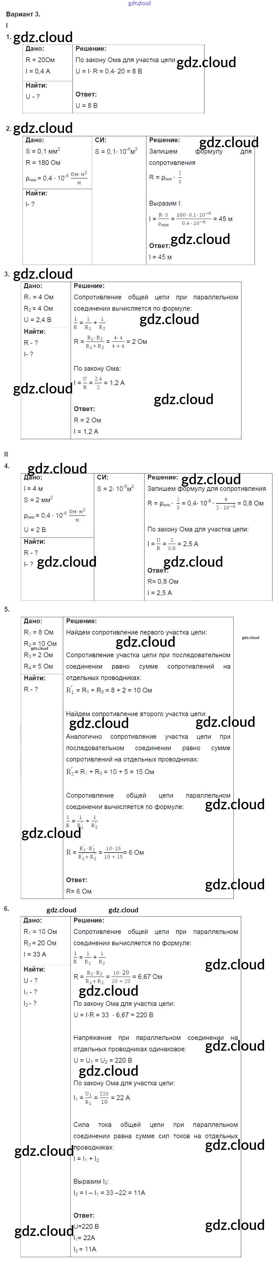 КР №3. Электрический ток. Варианты Ответы к контрольным работам по Физике 8 класс Дидактические материалы Марон Вертикаль Дрофа
