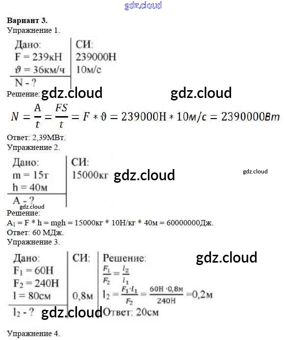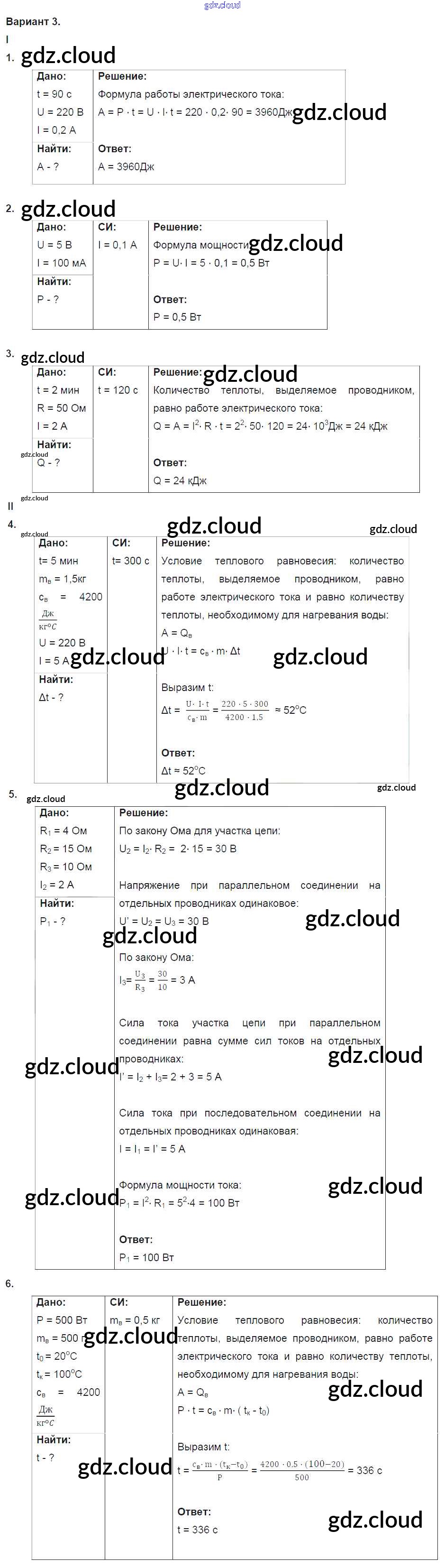 КР №4. Работа и мощность тока. Варианты Ответы к контрольным работам по Физике 8 класс Дидактические материалы Марон Вертикаль Дрофа