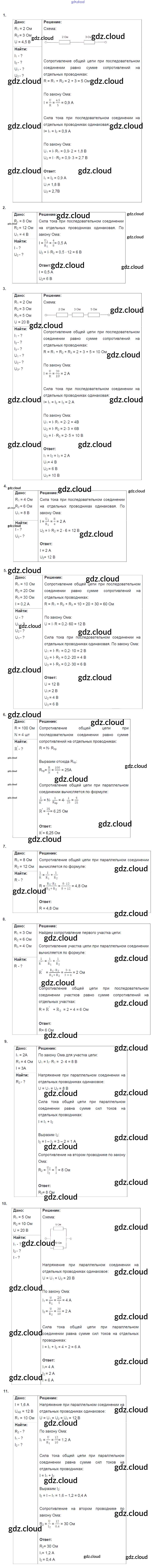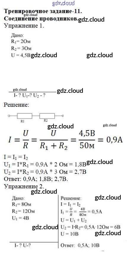 Ответ на задание 11. Соединение проводников Дидактические материалы Физика за 8 (восьмой) класс Марон Вертикаль 2016