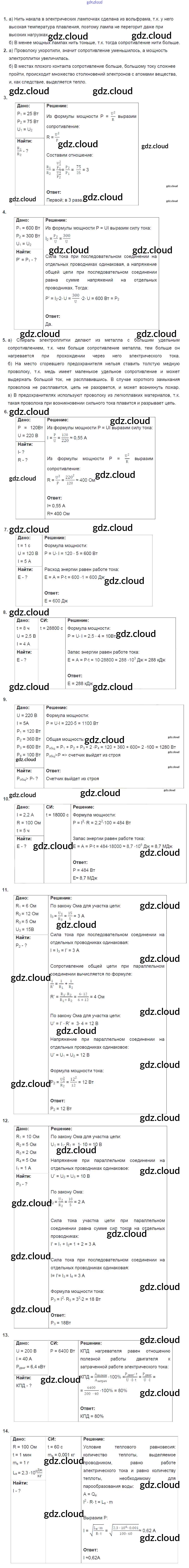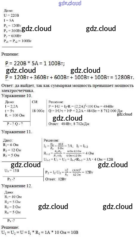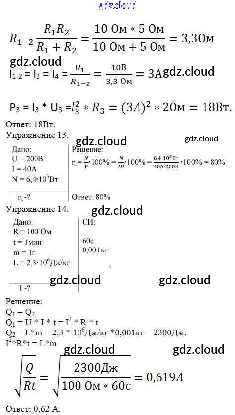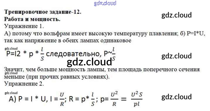 Ответ на задание 12. Работа и мощность тока Дидактические материалы Физика за 8 (восьмой) класс Марон Вертикаль 2016