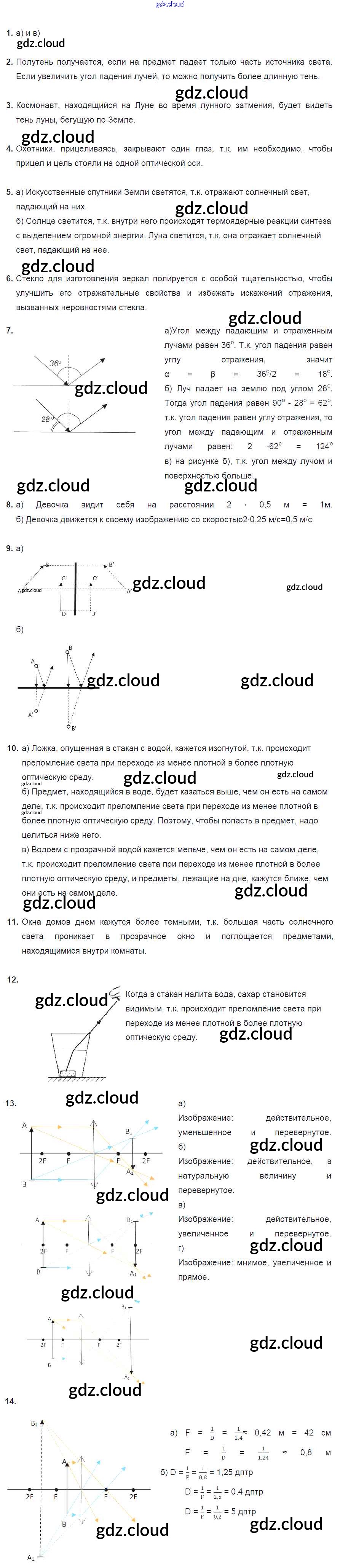 Ответ на задание 14. Оптические явления Дидактические материалы Физика за 8 (восьмой) класс Марон Вертикаль 2016