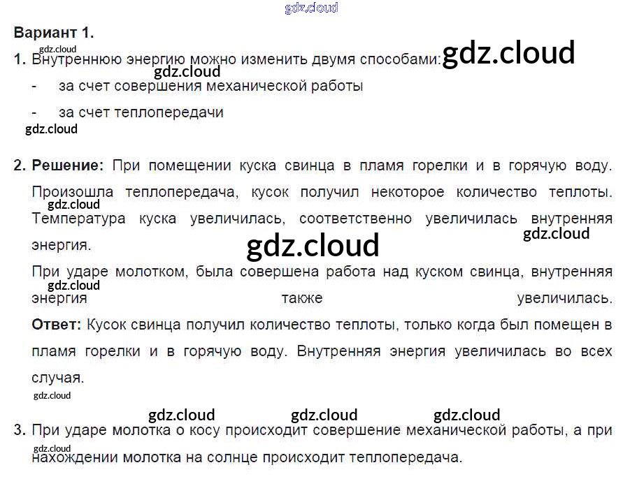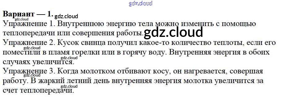 СР №1. Внутренняя энергия. Варианты Ответы к самостоятельным работам по Физике 8 класс Дидактические материалы Марон Вертикаль Дрофа