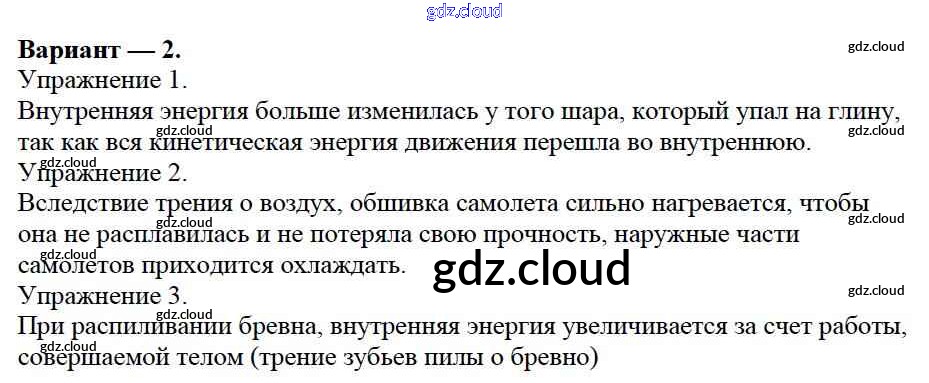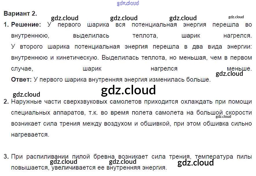 СР №1. Внутренняя энергия. Варианты Ответы к самостоятельным работам по Физике 8 класс Дидактические материалы Марон Вертикаль Дрофа