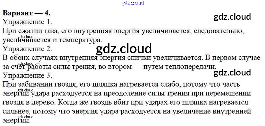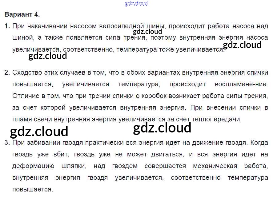 СР №1. Внутренняя энергия. Варианты Ответы к самостоятельным работам по Физике 8 класс Дидактические материалы Марон Вертикаль Дрофа