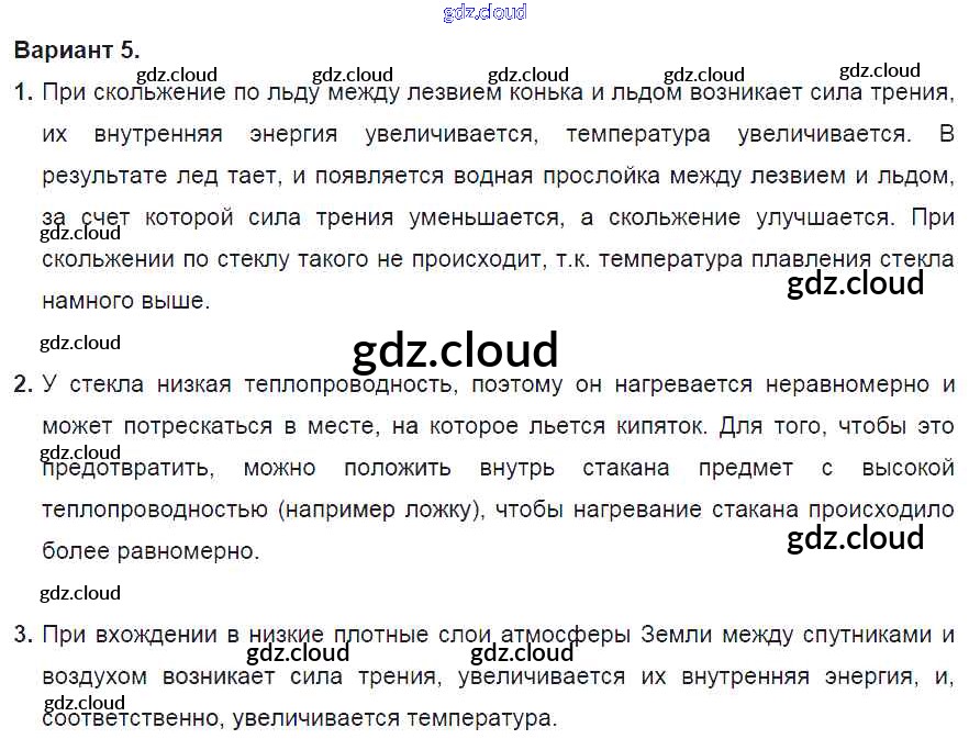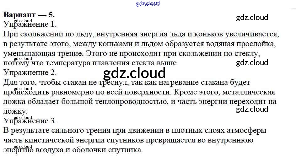 СР №1. Внутренняя энергия. Варианты Ответы к самостоятельным работам по Физике 8 класс Дидактические материалы Марон Вертикаль Дрофа