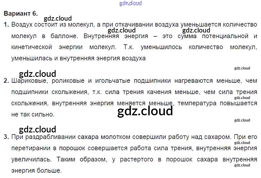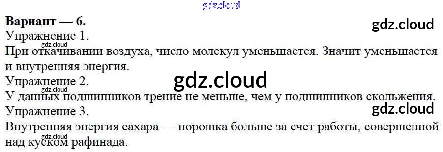 СР №1. Внутренняя энергия. Варианты Ответы к самостоятельным работам по Физике 8 класс Дидактические материалы Марон Вертикаль Дрофа
