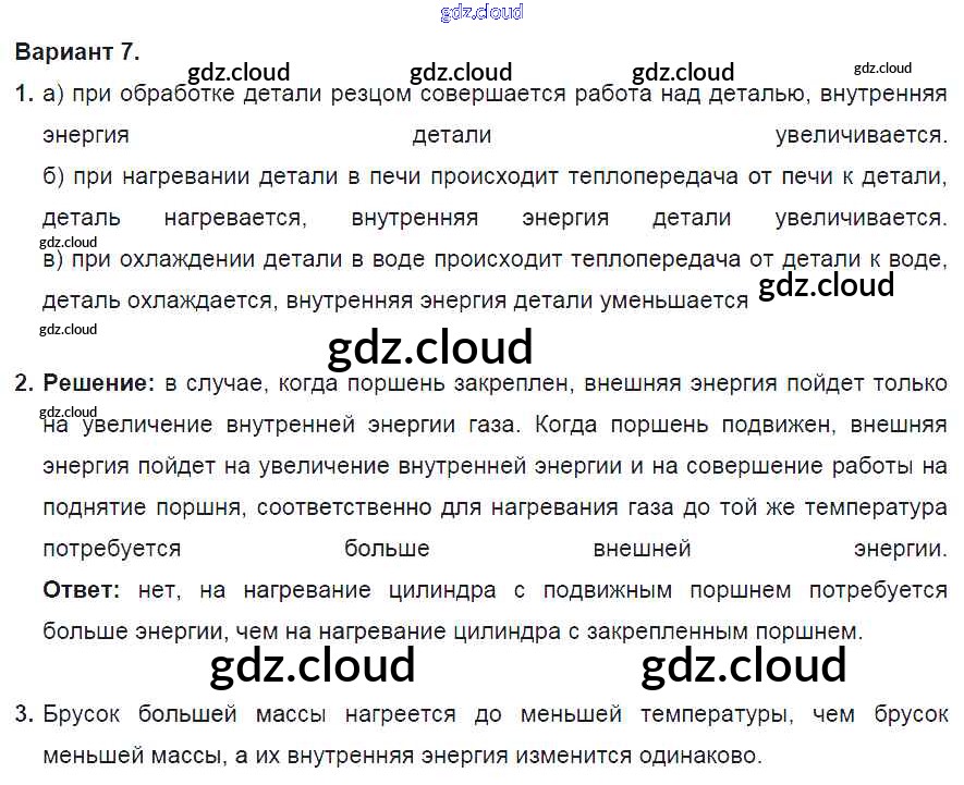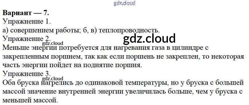 СР №1. Внутренняя энергия. Варианты Ответы к самостоятельным работам по Физике 8 класс Дидактические материалы Марон Вертикаль Дрофа