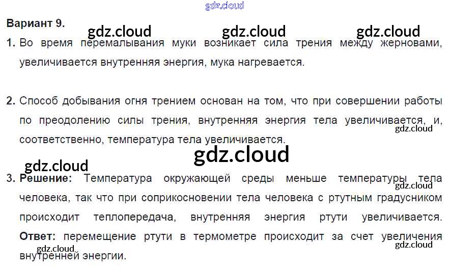 СР №1. Внутренняя энергия. Варианты Ответы к самостоятельным работам по Физике 8 класс Дидактические материалы Марон Вертикаль Дрофа