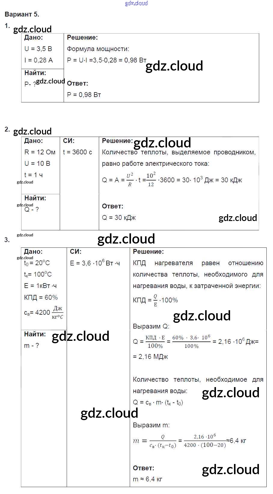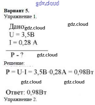 СР №10. Работа и мощность тока. Варианты Ответы к самостоятельным работам по Физике 8 класс Дидактические материалы Марон Вертикаль Дрофа