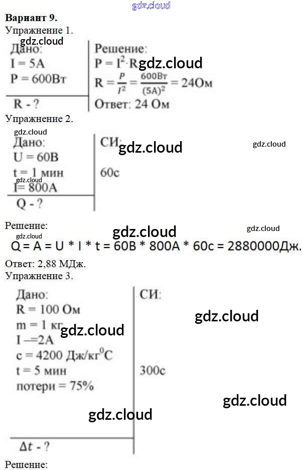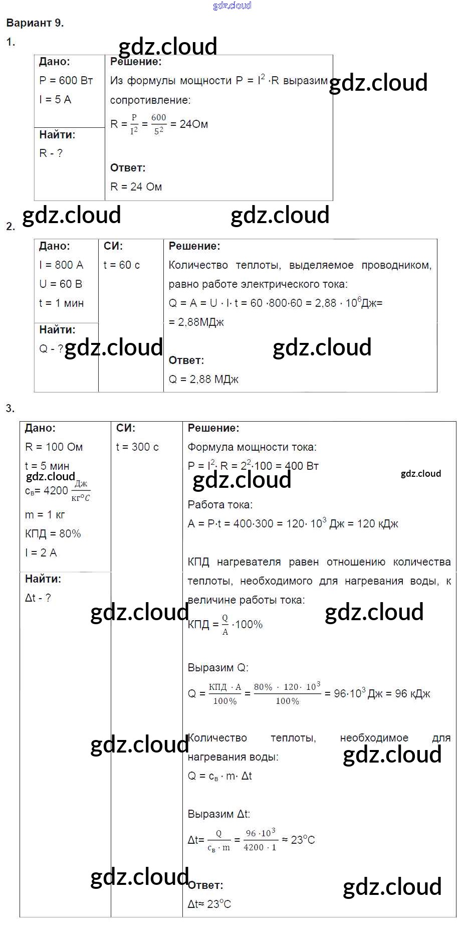 СР №10. Работа и мощность тока. Варианты Ответы к самостоятельным работам по Физике 8 класс Дидактические материалы Марон Вертикаль Дрофа