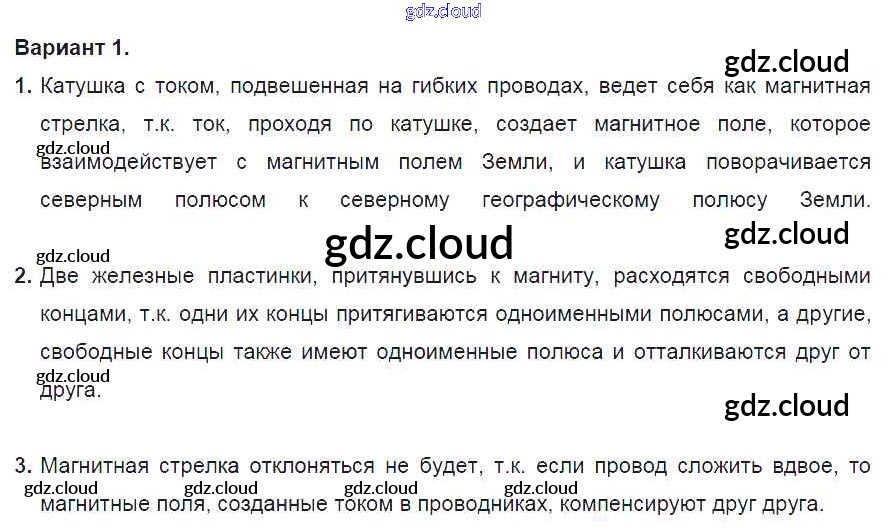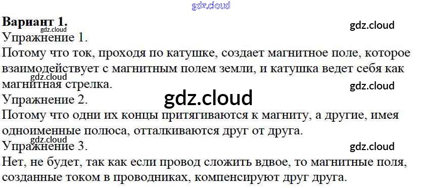 СР №11. Электромагнитные явления. Варианты Ответы к самостоятельным работам по Физике 8 класс Дидактические материалы Марон Вертикаль Дрофа