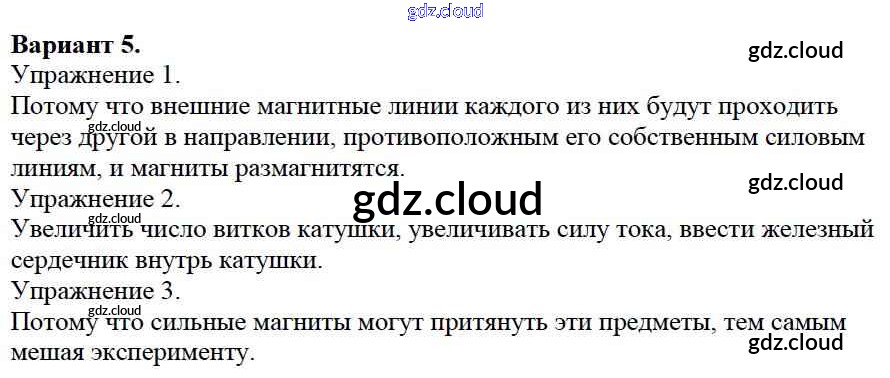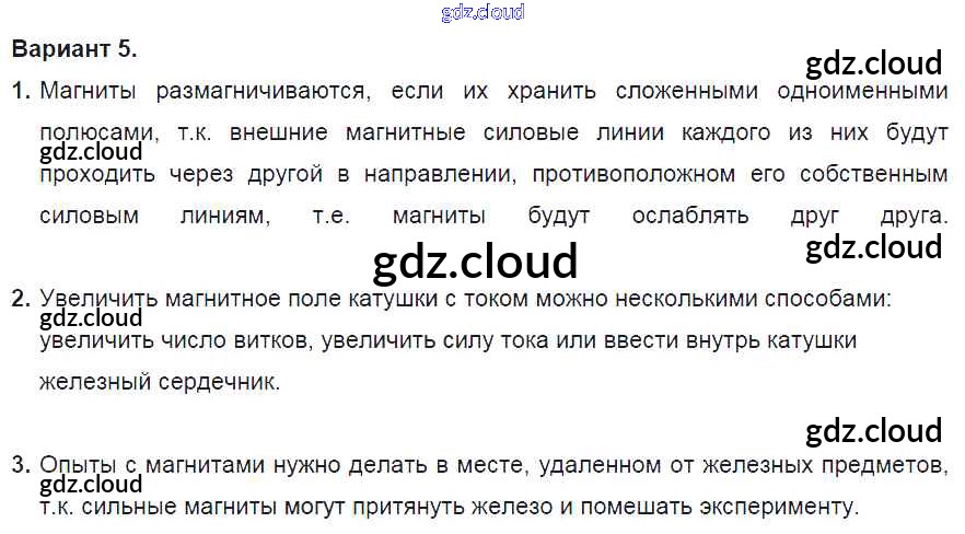СР №11. Электромагнитные явления. Варианты Ответы к самостоятельным работам по Физике 8 класс Дидактические материалы Марон Вертикаль Дрофа