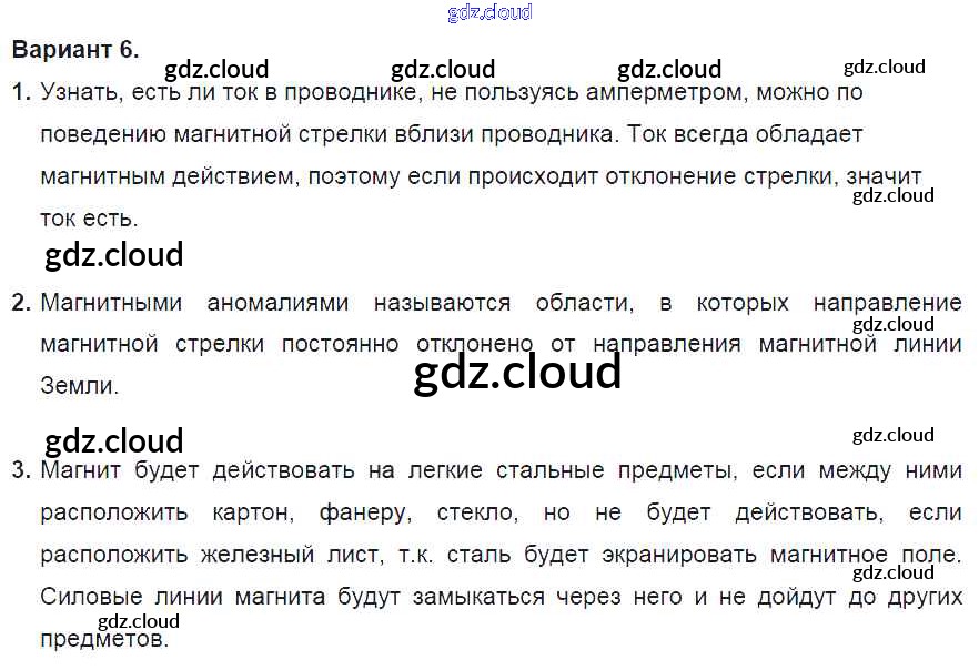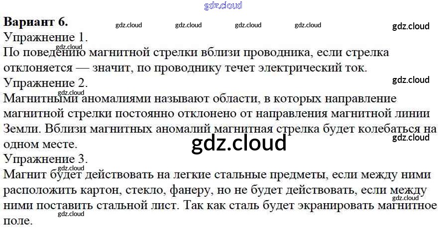 СР №11. Электромагнитные явления. Варианты Ответы к самостоятельным работам по Физике 8 класс Дидактические материалы Марон Вертикаль Дрофа