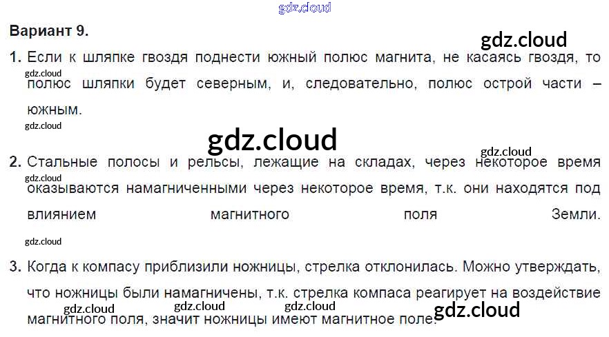 СР №11. Электромагнитные явления. Варианты Ответы к самостоятельным работам по Физике 8 класс Дидактические материалы Марон Вертикаль Дрофа