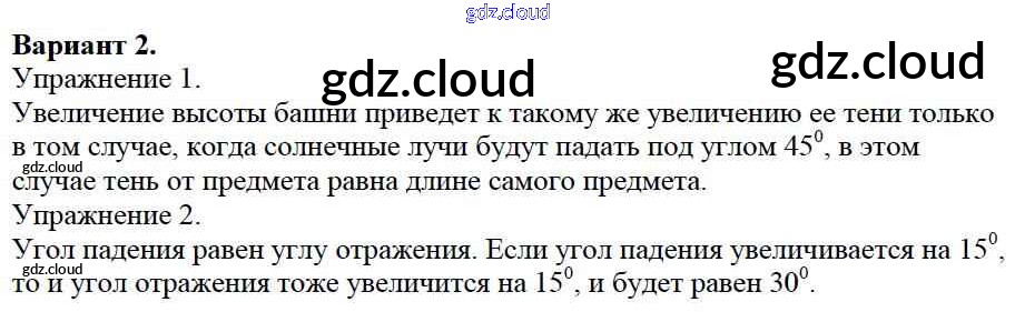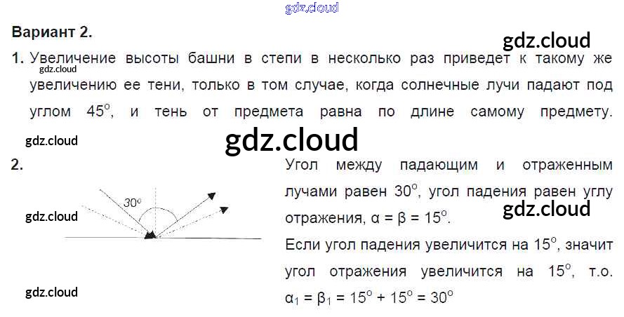 СР №12. Отражение света. Плоское зеркало. Варианты Ответы к самостоятельным работам по Физике 8 класс Дидактические материалы Марон Вертикаль Дрофа