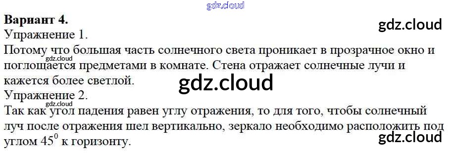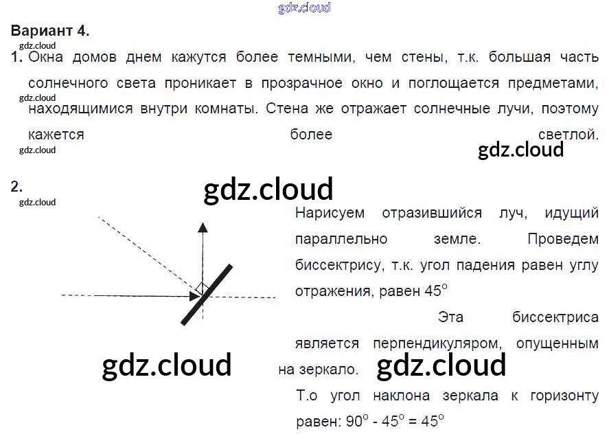 СР №12. Отражение света. Плоское зеркало. Варианты Ответы к самостоятельным работам по Физике 8 класс Дидактические материалы Марон Вертикаль Дрофа