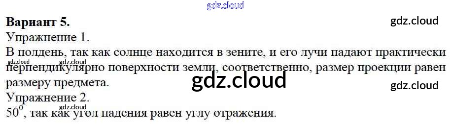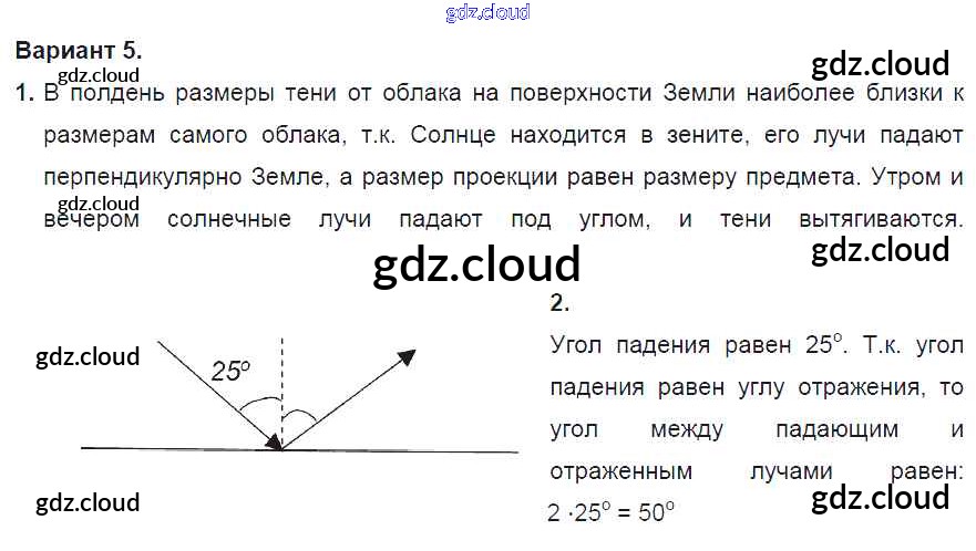 СР №12. Отражение света. Плоское зеркало. Варианты Ответы к самостоятельным работам по Физике 8 класс Дидактические материалы Марон Вертикаль Дрофа