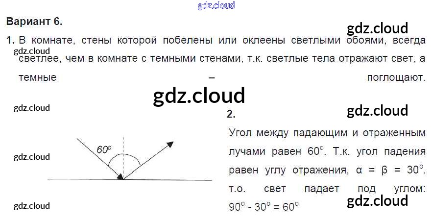 СР №12. Отражение света. Плоское зеркало. Варианты Ответы к самостоятельным работам по Физике 8 класс Дидактические материалы Марон Вертикаль Дрофа