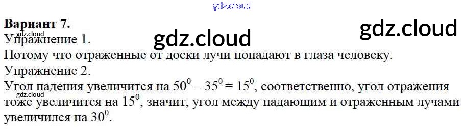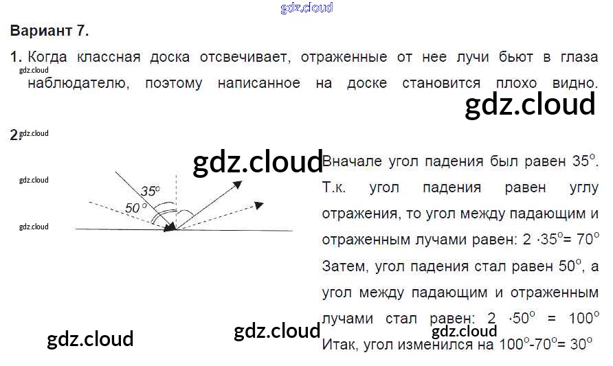 СР №12. Отражение света. Плоское зеркало. Варианты Ответы к самостоятельным работам по Физике 8 класс Дидактические материалы Марон Вертикаль Дрофа