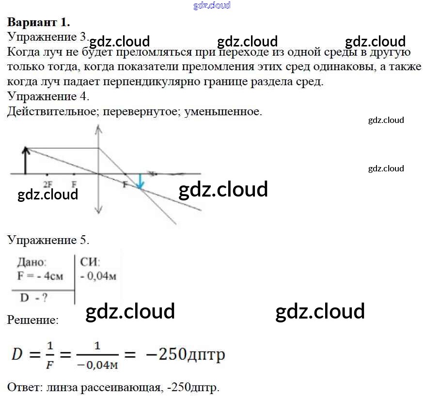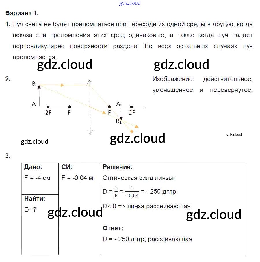 СР №13. Преломление света. Линзы. Варианты Ответы к самостоятельным работам по Физике 8 класс Дидактические материалы Марон Вертикаль Дрофа