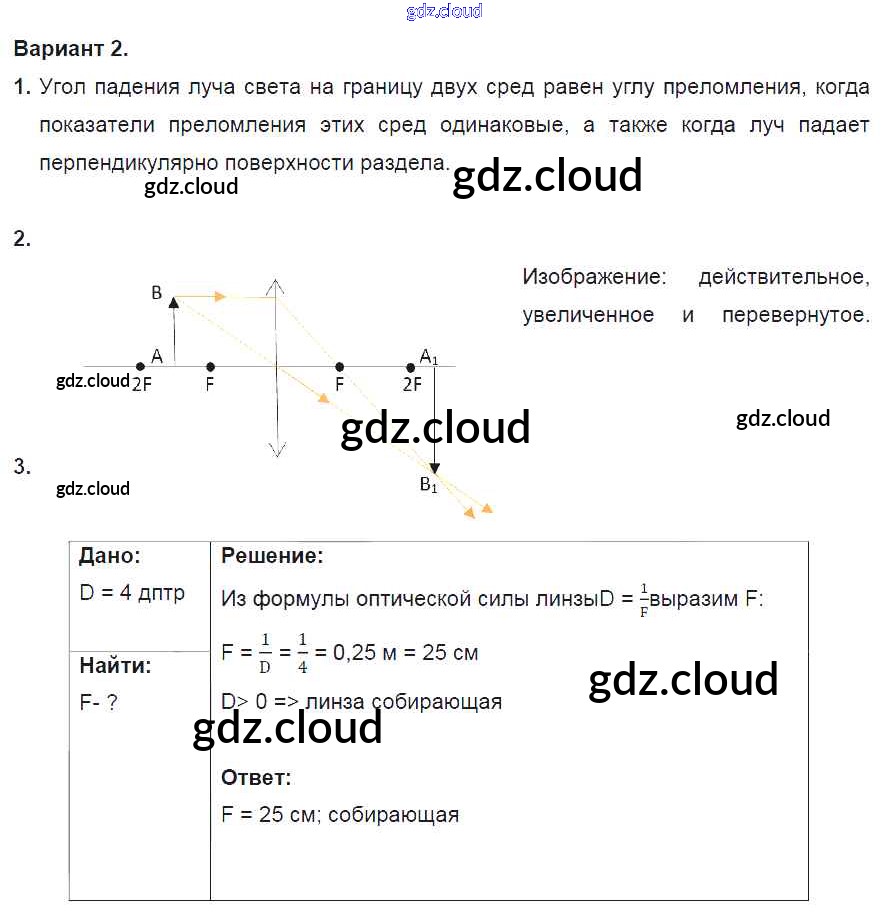 СР №13. Преломление света. Линзы. Варианты Ответы к самостоятельным работам по Физике 8 класс Дидактические материалы Марон Вертикаль Дрофа