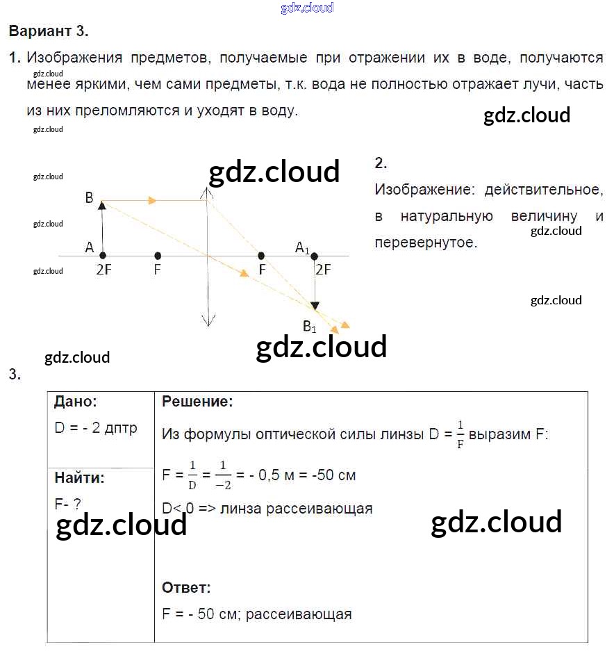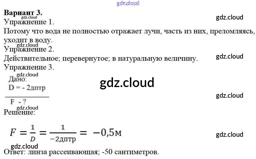 СР №13. Преломление света. Линзы. Варианты Ответы к самостоятельным работам по Физике 8 класс Дидактические материалы Марон Вертикаль Дрофа