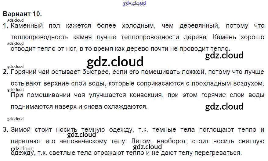 СР №2. Виды теплопередачи. Варианты Ответы к самостоятельным работам по Физике 8 класс Дидактические материалы Марон Вертикаль Дрофа