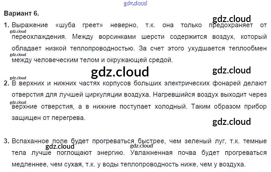 СР №2. Виды теплопередачи. Варианты Ответы к самостоятельным работам по Физике 8 класс Дидактические материалы Марон Вертикаль Дрофа