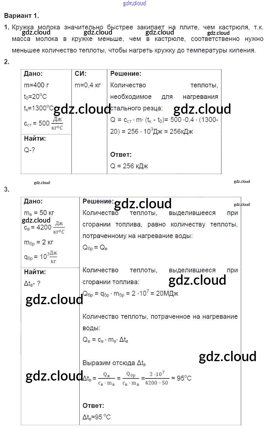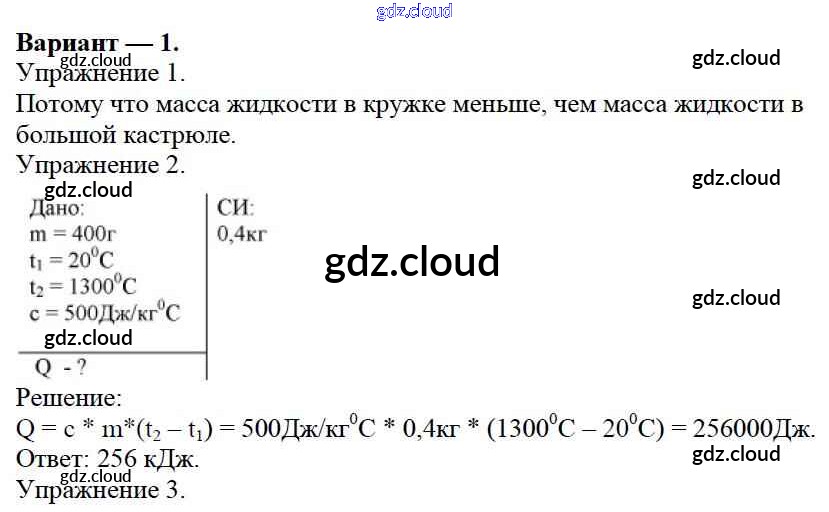 СР №3. Количество теплоты. Энергия топлива. Варианты Ответы к самостоятельным работам по Физике 8 класс Дидактические материалы Марон Вертикаль Дрофа