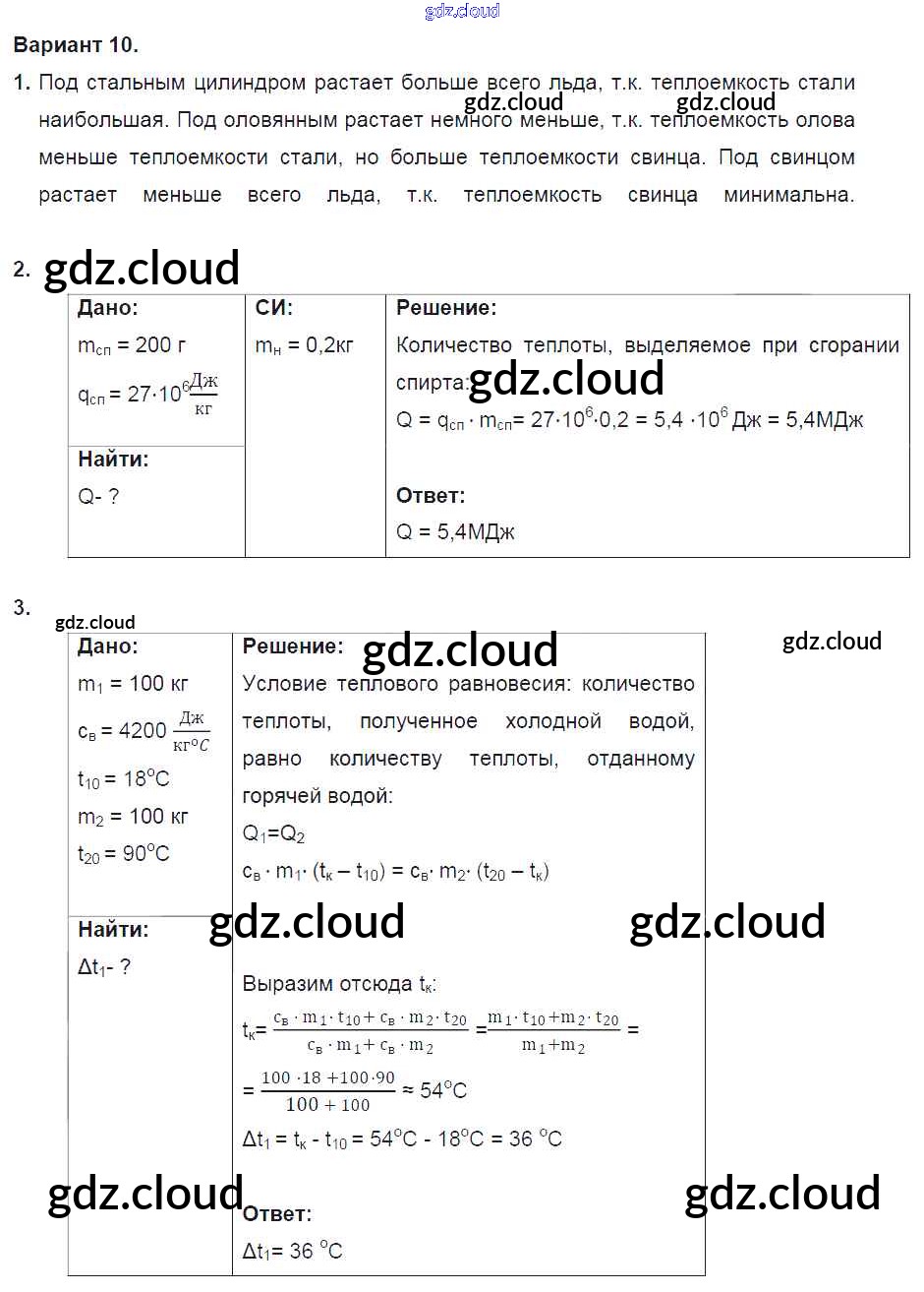 Ответ на задание 10 Дидактические материалы Физика за 8 (восьмой) класс Марон Вертикаль 2016