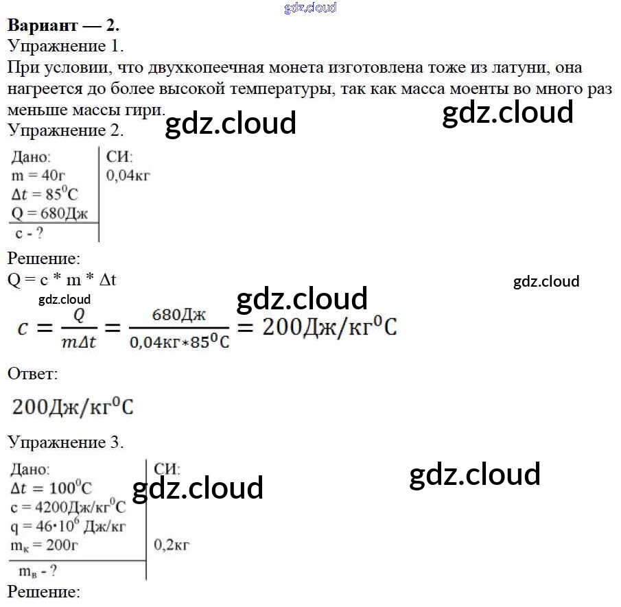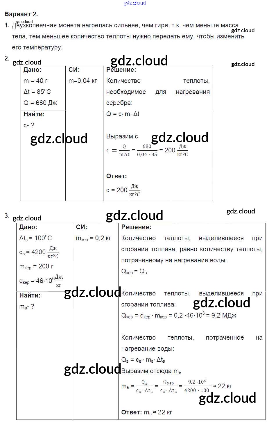 СР №3. Количество теплоты. Энергия топлива. Варианты Ответы к самостоятельным работам по Физике 8 класс Дидактические материалы Марон Вертикаль Дрофа