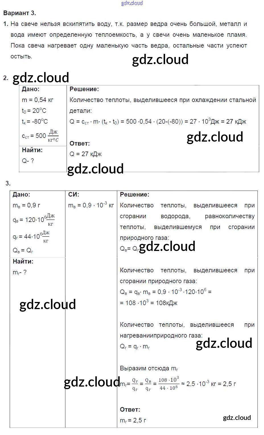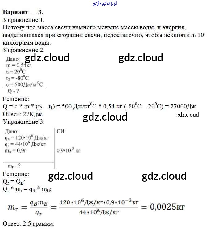 СР №3. Количество теплоты. Энергия топлива. Варианты Ответы к самостоятельным работам по Физике 8 класс Дидактические материалы Марон Вертикаль Дрофа