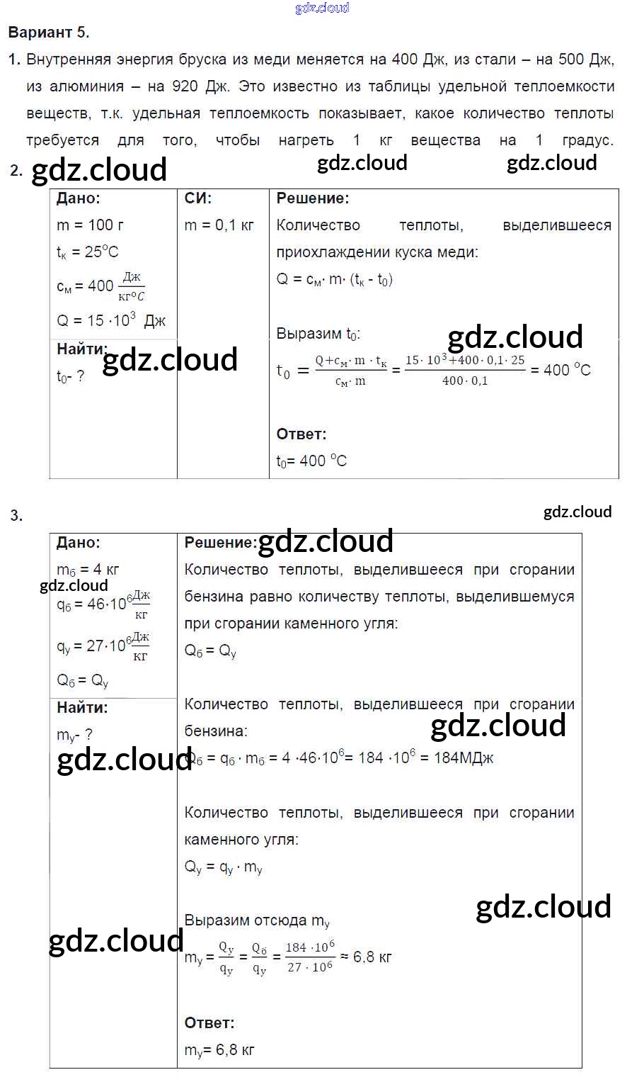СР №3. Количество теплоты. Энергия топлива. Варианты Ответы к самостоятельным работам по Физике 8 класс Дидактические материалы Марон Вертикаль Дрофа